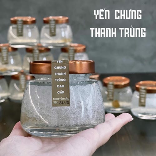 Yến chưng thanh trùng được chưng theo đơn đặt hàng của khách, giao hàng ngay khi còn ấm nóng. Thời gian chưng khoảng 1 tiếng.